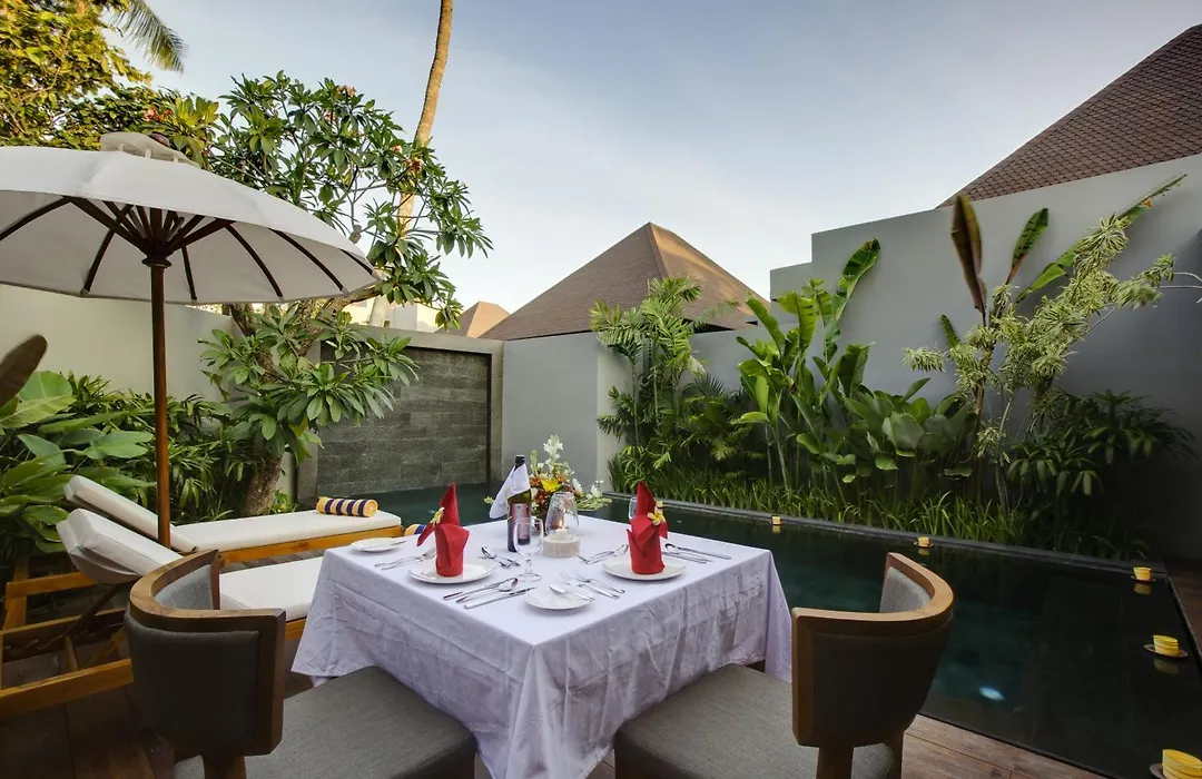 This Seminyak accommodation is situated right around the corner from the revered Petitenget Temple.